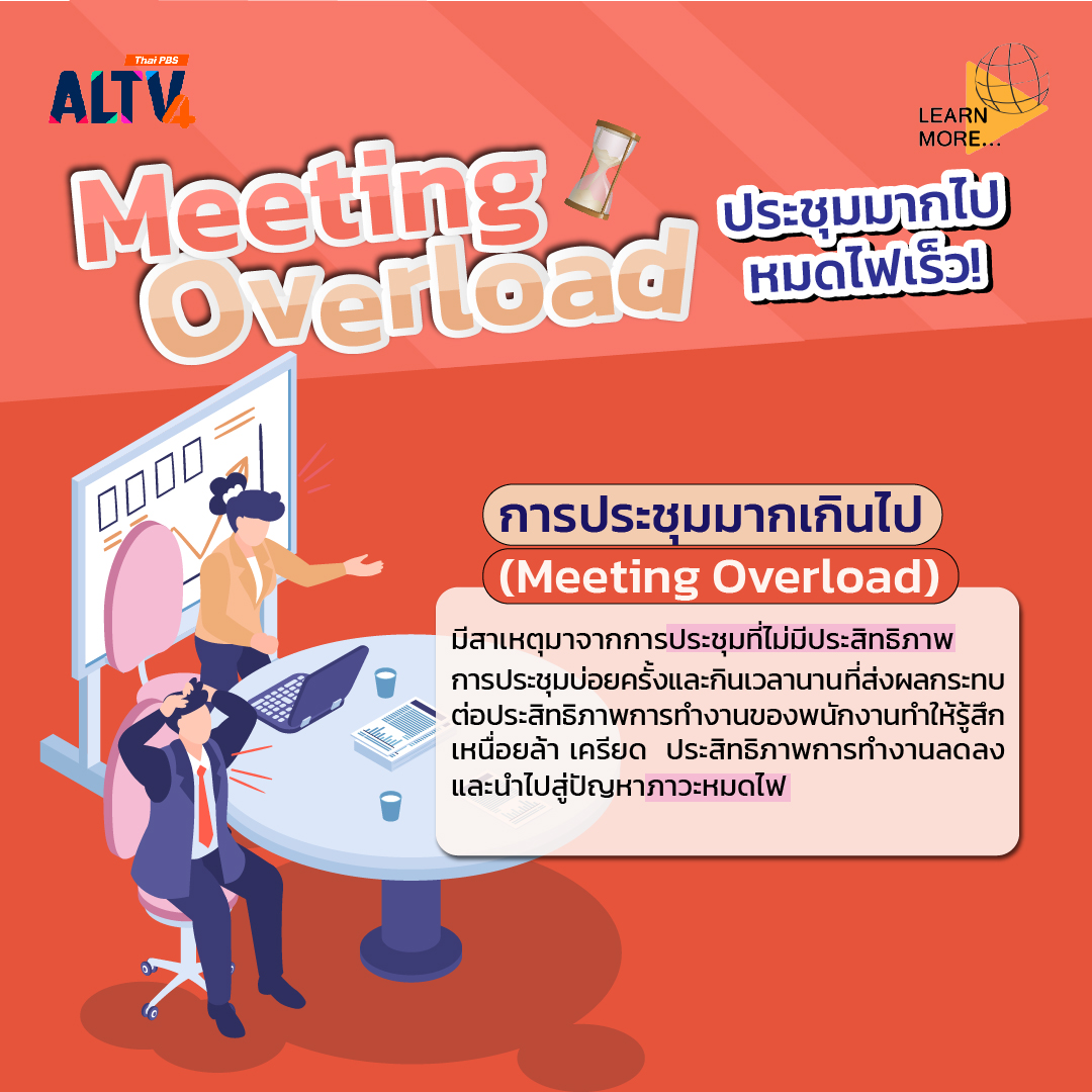 การประชุมมากเกินไป (Meeting overload) กำลังเป็นปัญหาในหลายองค์กรทั่วโลก โดยมีสาเหตุมาจากการประชุมที่ไม่มีประสิทธิภาพ ขาดข้อสรุปที่ชัดเจน ทำให้ต้องมีการประชุมบ่อยครั้ง และกินเวลานาน จนส่งผลกระทบต่อประสิทธิภาพการทำงานของพนักงาน ทำให้รู้สึกเหนื่อยล้า เครียด ประสิทธิภาพการทำงานลดลง และมีแนวโน้มทำให้พนักงานต้องทำงานล่วงเวลามากขึ้น จนนำไปสู่ปัญหาด้านสุขภาพกายและใจ หรือ ภาวะหมดไฟ (Burnout Syndrome)